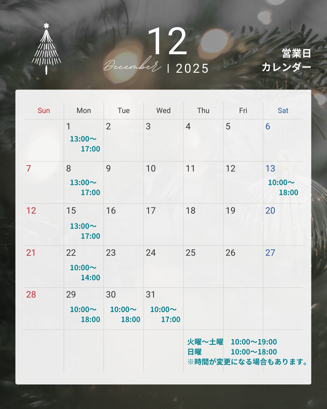 ※営業時間の変更がある場合もございます。 ※最新の営業時間は当店のSNS(Instagram)等をご確認ください。