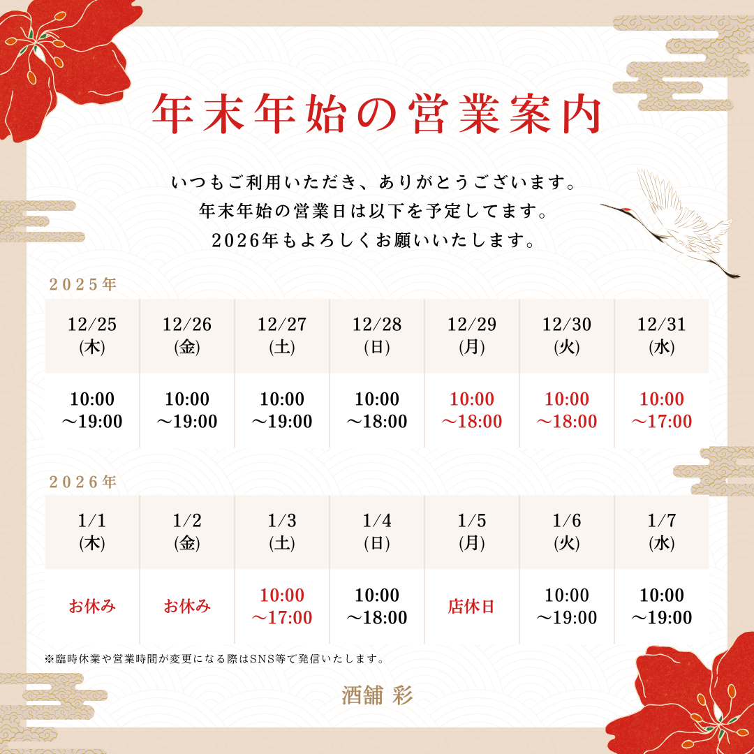 ※ご注文の商品によっては少々お時間を頂くため、年始の発送となる場合もございます。